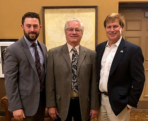 The Pocono Township Volunteer Fire Company recently held its annual banquet. Donald Simpson of Tannersville was recognized for his 50 years of service to the fire company. Throughout those years, Don responded to more than 3,000 calls in the community. I want to thank all the firefighters for their service. I am pictured with Taylor Munoz, chief of staff for Sen. Mario Scavello, and Donald Simpson from Pocono Township Volunteer Fire Company. |